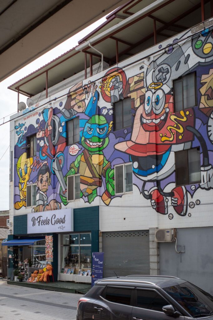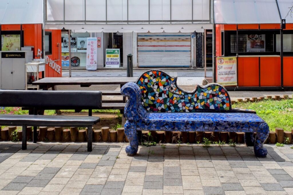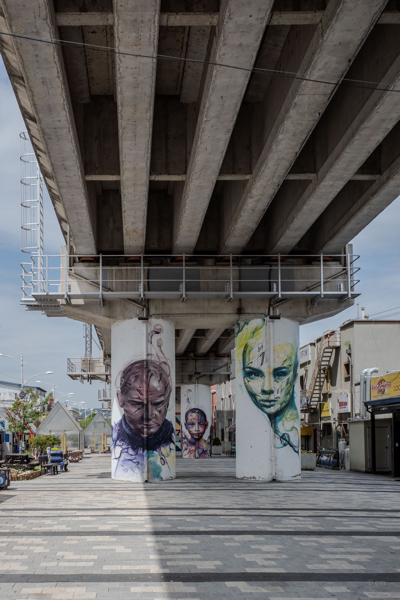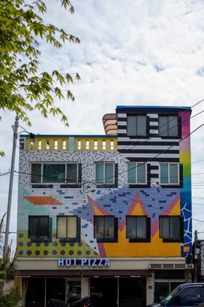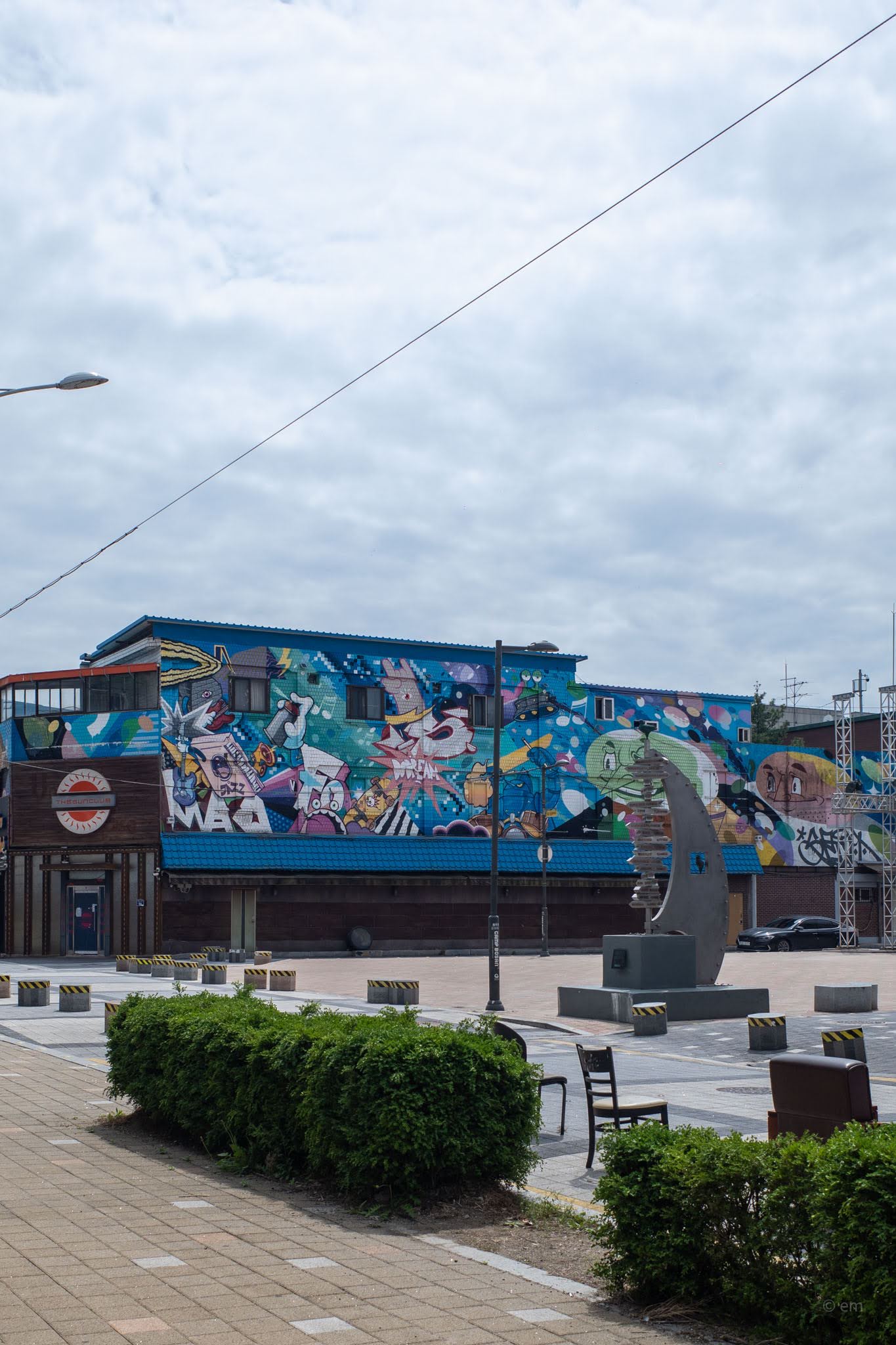 The city’s response was to try to make the neighborhood’s strangeness into an asset. The area was designated as a Foreign Tourist Zone in 1997, and in recent years the name “Camp” has been reframed to stand for “Culture & Art Market Place.” A public art project run by the Gyeonggi Cultural Foundation between 2015 and 2019 brought in street artists from Italy, Russia, Thailand, Denmark, and elsewhere, transforming the elevated subway pillars that bisect the neighborhood into large-scale painted canvases. The result is a pedestrian corridor under a concrete overpass that’s become, somewhat unexpectedly, the most visually striking part of the whole area.