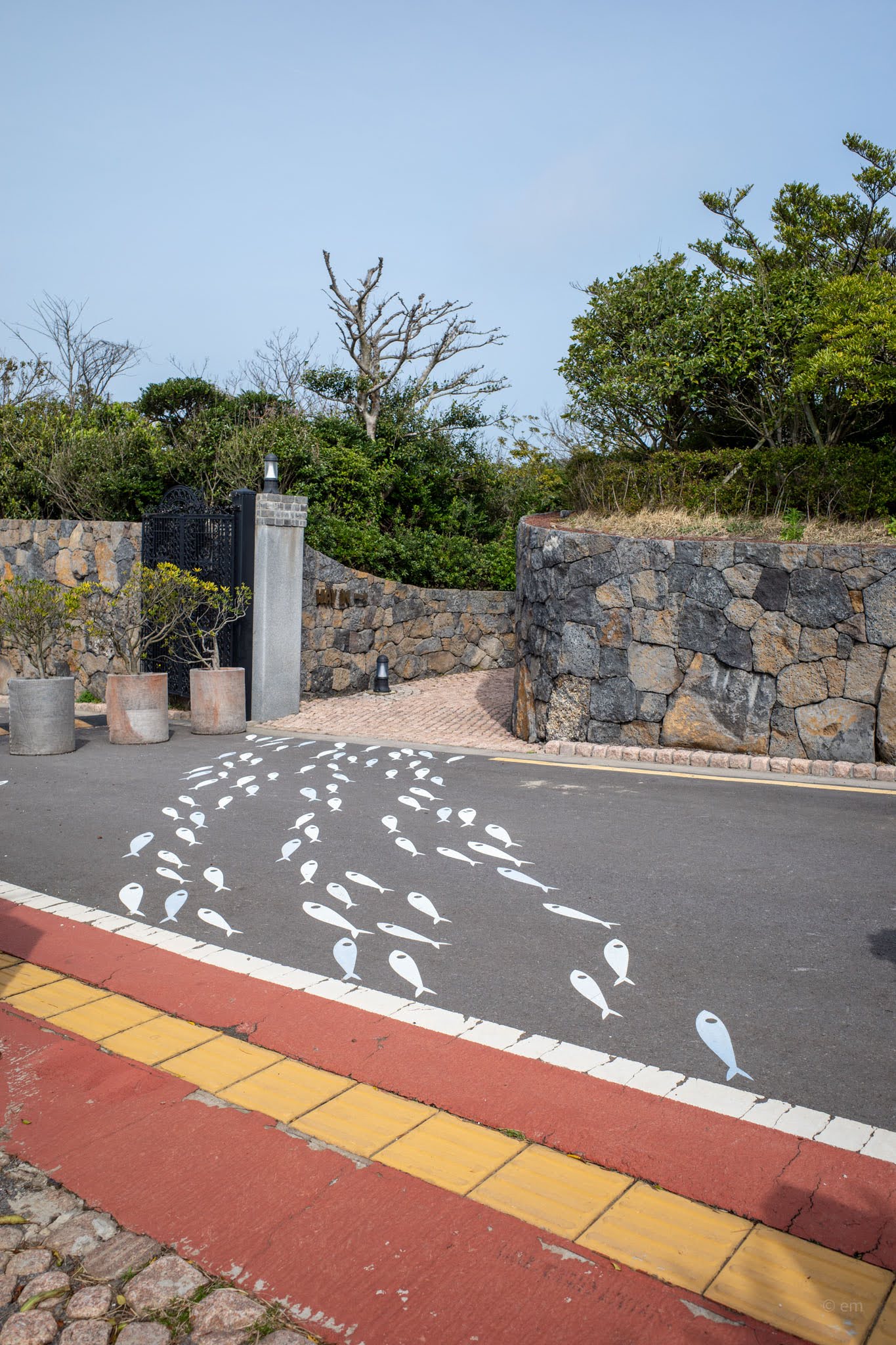 There were few people here. That fact carried its own atmosphere. A space this saturated with intention — this much mosaic, this many columns, this sustained an architectural argument over this much ground — deserves more traffic than it gets. The park lies at the southern end of Udo, slightly removed from the beaches and the ice cream stalls that generate the island’s foot traffic, and many visitors to Udo never arrive this far. Those who do tend to move through quickly, photographing the domes and leaving. The slower itinerary — the walk through the grounds, the time inside the tower, the staircase, the exit wall — belongs to almost no one on a weekday morning.