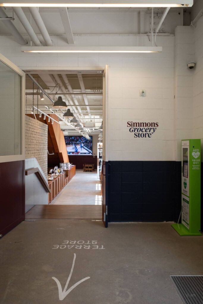 Absolutely — and not just for the food. Simmons Grocery Store Icheon is one of the more thoughtful examples of brand experience design in Korea right now. The team at Simmons Design Studio hasn’t slapped basketball imagery onto a generic café space; they’ve committed to a genuinely specific slice of American cultural nostalgia — the gymnasium, the locker room, the diner counter, the VHS tape — and executed it with impressive consistency and craft.