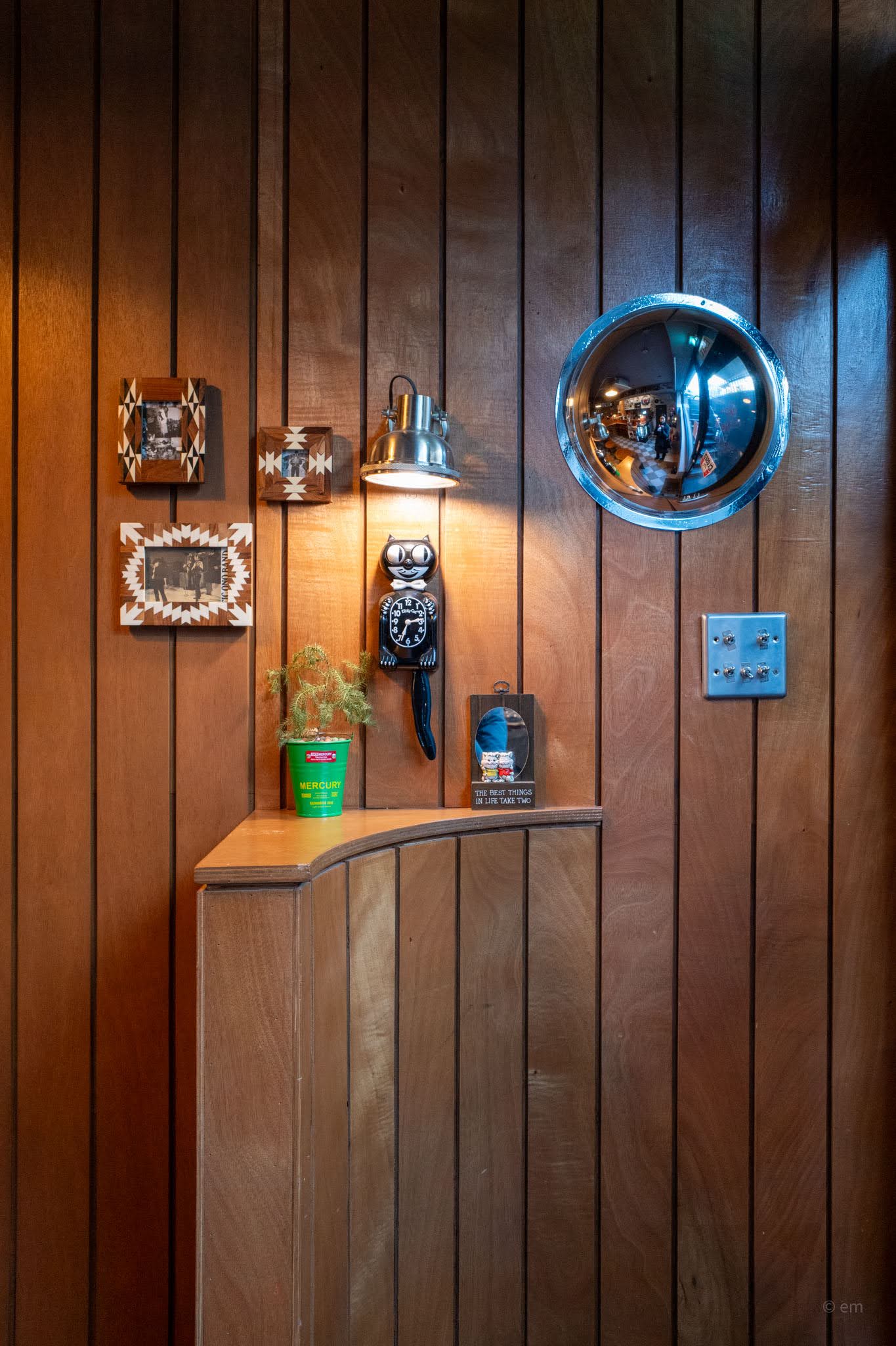 The effect is less “themed restaurant” and more “someone’s very cool uncle’s basement.” It feels lived-in and genuine.