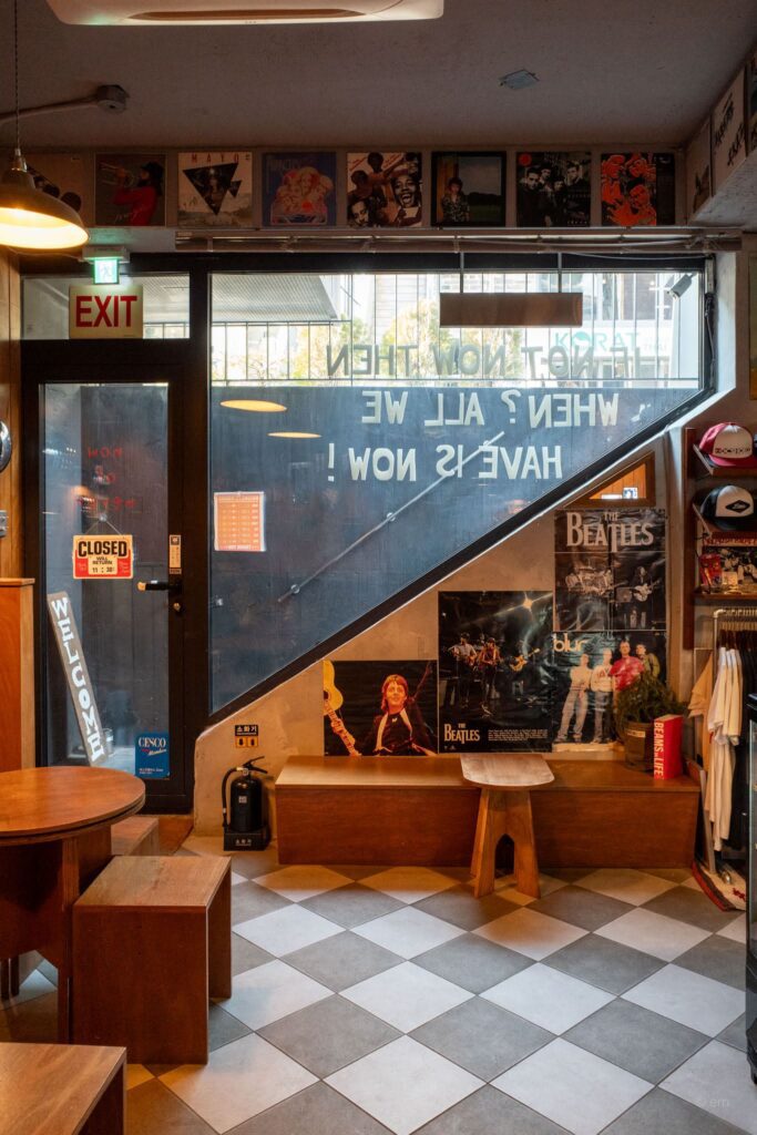 In a neighborhood already famous for its indie café culture, Now or Never stands apart. This is not another minimalist third-wave coffee shop. This is a love letter to rock music history, Japanese café aesthetics, and the kind of details that obsessive collectors live for.